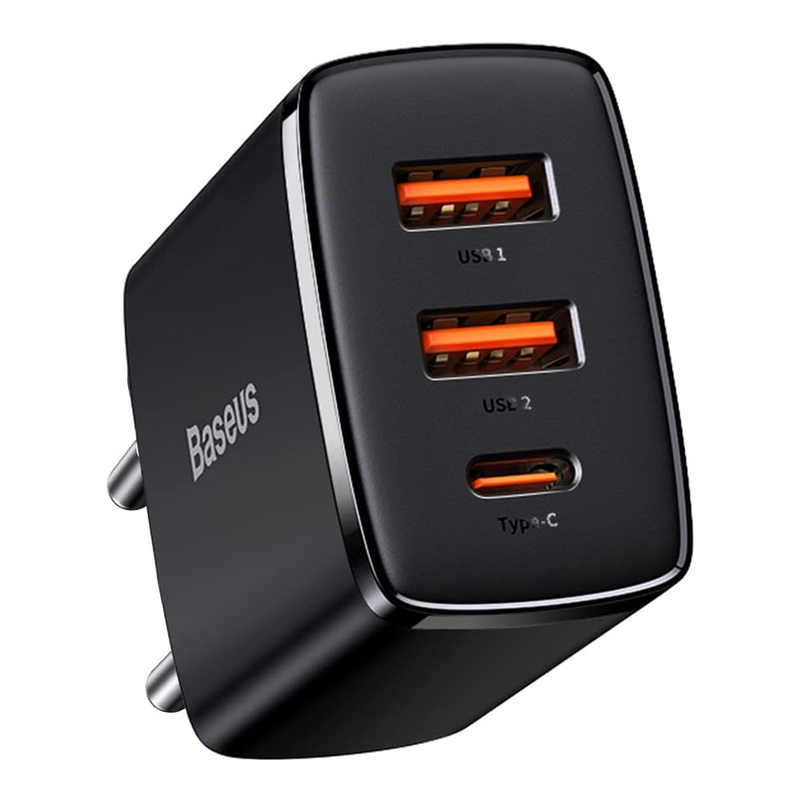 Baseus Kompakt 2U + C | Wandladegerät, Netzadapter, 2x USB-A, 1x USB-C, 30 W, Quick Charge 3.0, schwarz