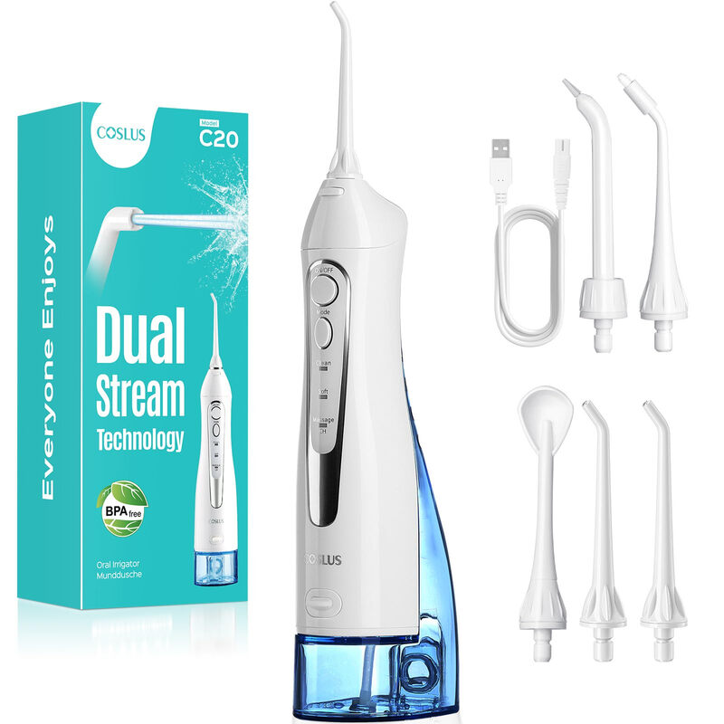 COSLUS C20 Jet dentaire hydropulseur portable sans fil blanc - 300 ml