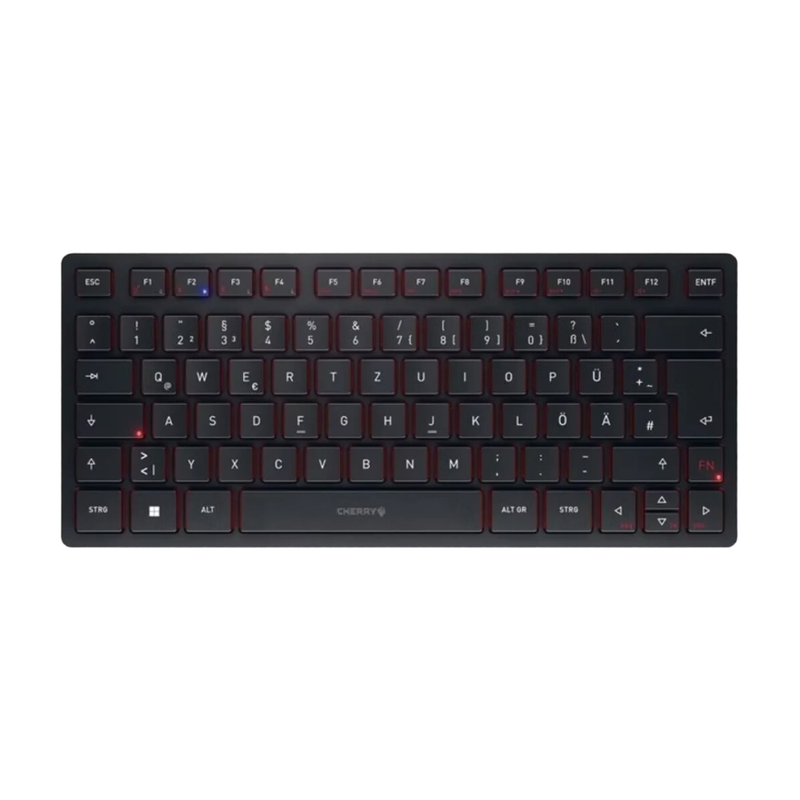 CHERRY KW 9200 MINI kabellose Multi-Device-Tastatur mit 4 Verbindungskanälen, wiederaufladbar, CHERRY SX Schneidematrix-Schalter, kompaktes Design – Schwarz