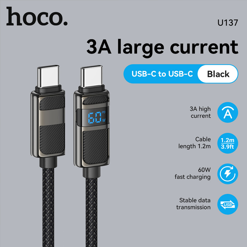 HOCO U137 60W USB-C to USB-C Charging Cable - 1.2M - Black