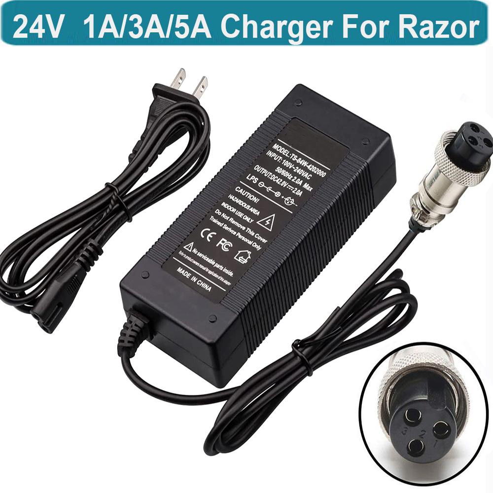 24V Battery Charger for Razor E100 E200 E300 E125 E150 E500 E175 PR200, E225S E325S MX350, Pocket Mod, Sports Mod, and Dirt Quad