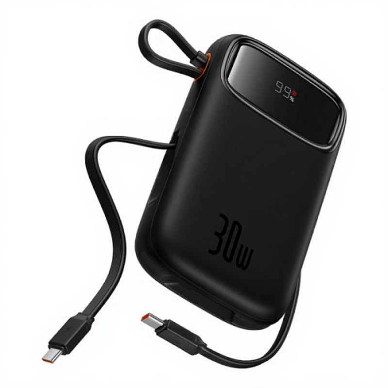 Baseus QPow 2 Schnellladepowerbank mit Digitalanzeige und 2 integrierten Typ-C-Kabeln, 10.000 mAh, 30 W, Cluster Black