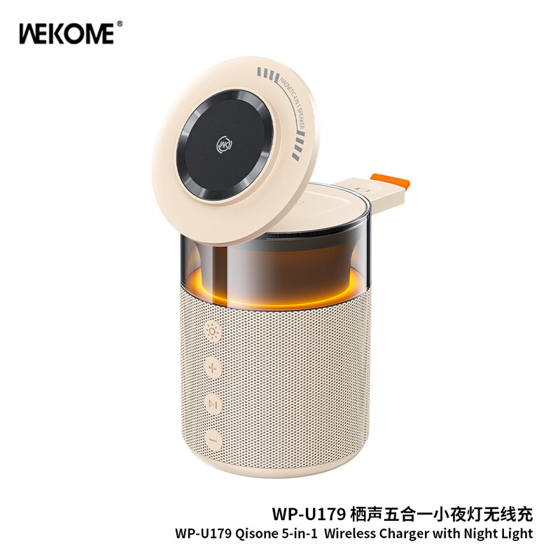 WEKOME TP-U179 Qisong veilleuse 5-en-1, charge sans fil rapide, Noir, Compatible avec les téléphones Apple, Huawei, Samsung et Xiaomi