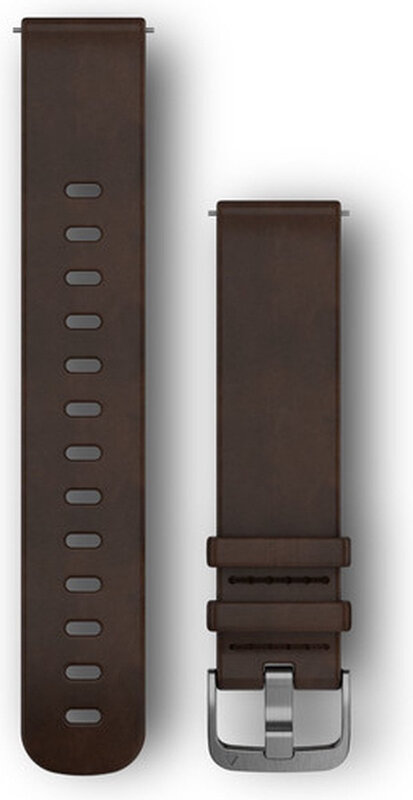 GARMIN Quick Release band 20 mm, donkerbruin leer, zilveren gesp