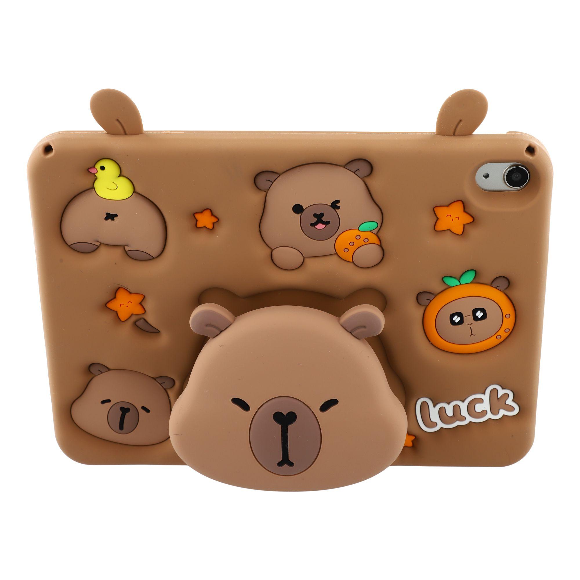 For iPad (2025)/iPad 10.9 (2022) Søtt silikondeksel til nettbrett med uttrekkbart bjørnestativ/skulderstropp