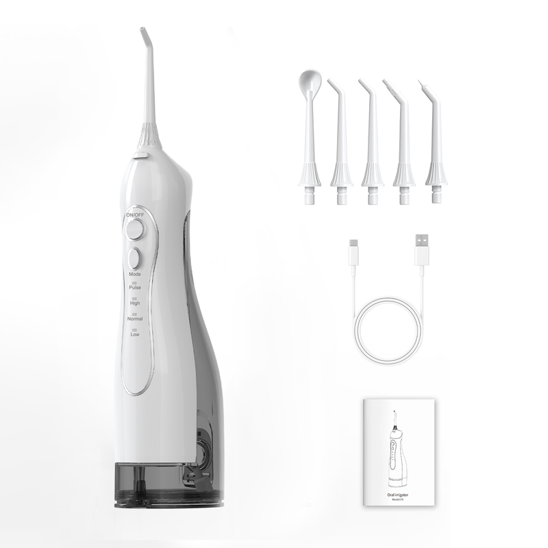 Sunluxy Hydropulseur dentaire sans fil et portable – Pression d’eau de 140 psi, 5 modes de nettoyage, buse pivotante à 360°, grand réservoir de 300 ml, jusqu’à 40 jours d’autonomie, 5 types de buses incluses, F5 blanc