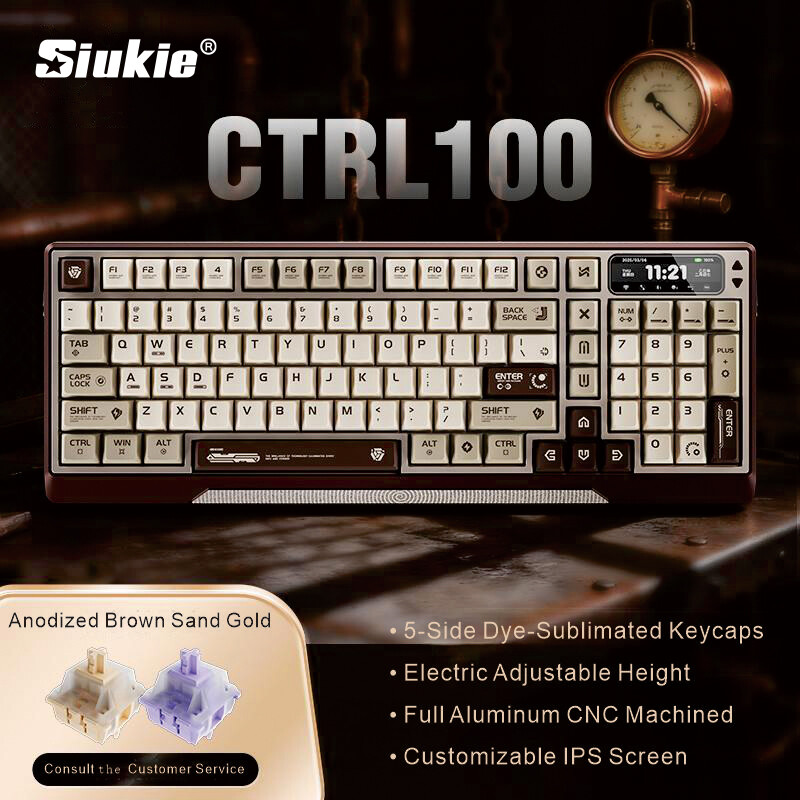【Levage Motorisé Innovant】Siukie CTRL100 Clavier mécanique en aluminium CNC, touches HMX Cream Taro HIFI, écran IPS personnalisable, Gasket Mount, sans-fil Tri-Mode, layout 96 %, US QWERTY - Bronze Anodisé