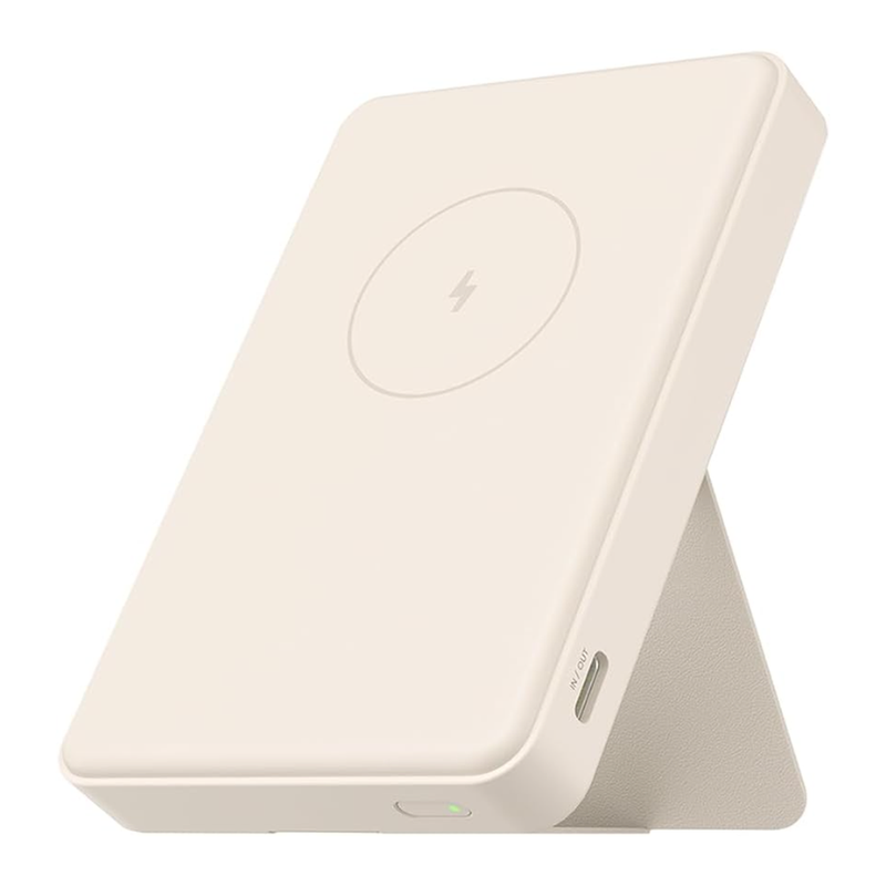 Xiaomi 15 W Magnetische Powerbank – 6000 mAh, Qi 2.0 kabelloses zertifiziertes Schnellladen, lädt 2 Geräte gleichzeitig, flugtauglich, mit Klappständer, Beige