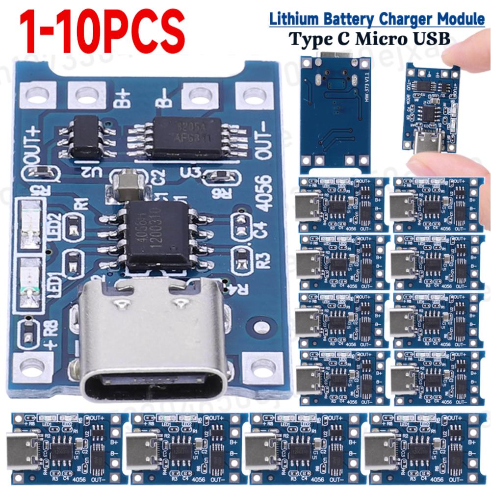 1-10 stk TP4056 Litiumbatteriladermodul 1A Bærbar Batteriladerpanel Type C Micro USB 4.5V-5V for Litiumbatterier
