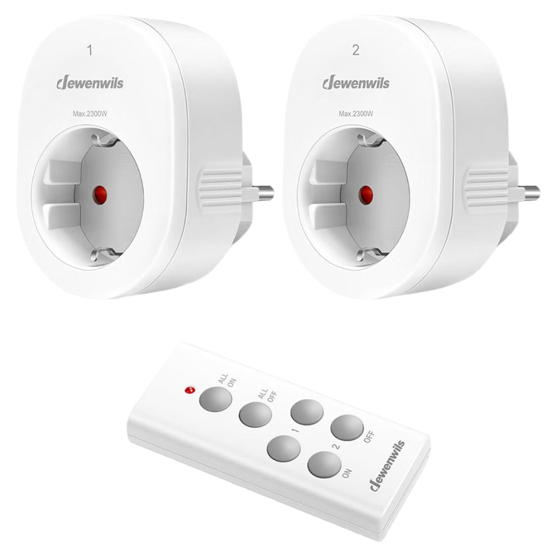 DEWENWILS Lot de 2 prises radio programmables et extensibles sans fil avec télécommande, 2300 W et portée de 30 m - Blanc