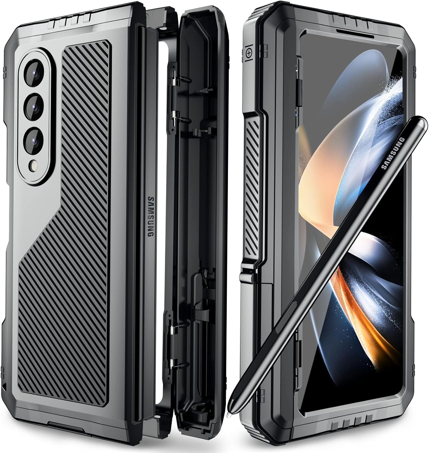 Military Protection Armor Heavy Duty Case For Saumsung Galaxy Z Fold 4 5 6 7 Full-Body Shockproof Cover Stand PET Screen Film red