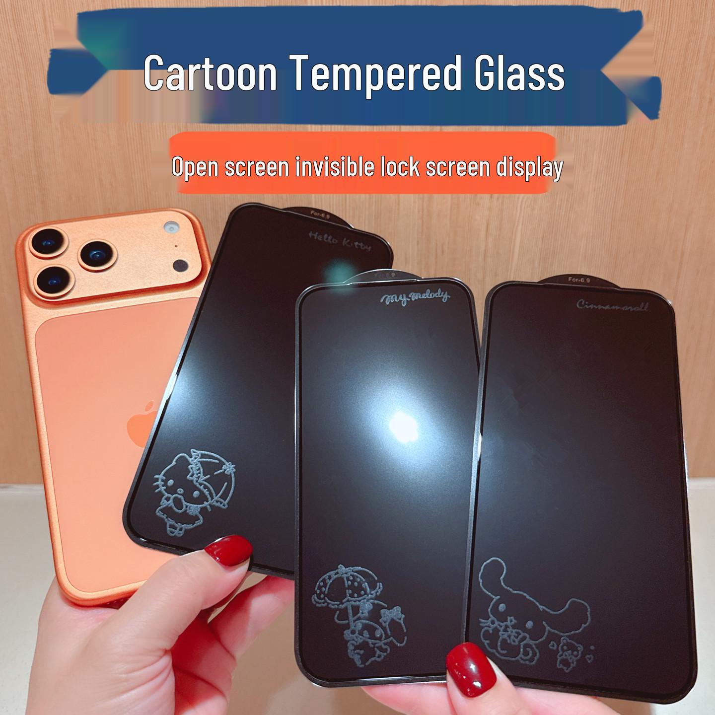 Süßer KT-Cartoon-Schutz aus gehärtetem Glas für iPhone 17/16/15