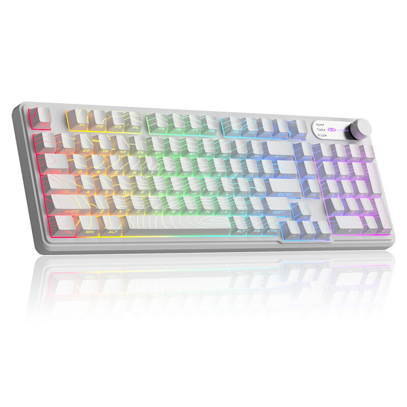 MageGee GK960 kabellose Gaming-Tastatur, US-QWERTY-Layout, RGB, Tri-Mode (kabelgebunden/Bluetooth/2,4 G), cremefarbene Tastatur mit Ziffernblock, 4000-mAh-Akku, Drehregler, seitlich aufgedruckte Tastenkappen, 19-Tasten-Rollover für Windows/Mac (Weiß, topografisch)