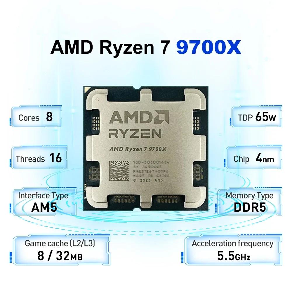 AMD Procesador Ryzen 7 9700X 8-Core (3.8GHz-5.45Hz) 32MB AM5