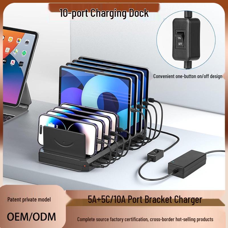 10-Port USB Charger with Storage Rack - Universal Desktop Dock for Tablets & Smartphones