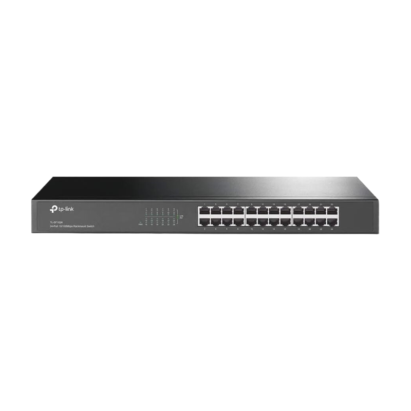 TP-Link TL-SF1024 24-Port Fast Ethernet Rackmount Switch | 10/100Mbps Ports | Metallgehäuse | Plug-and-Play | Schwarz
