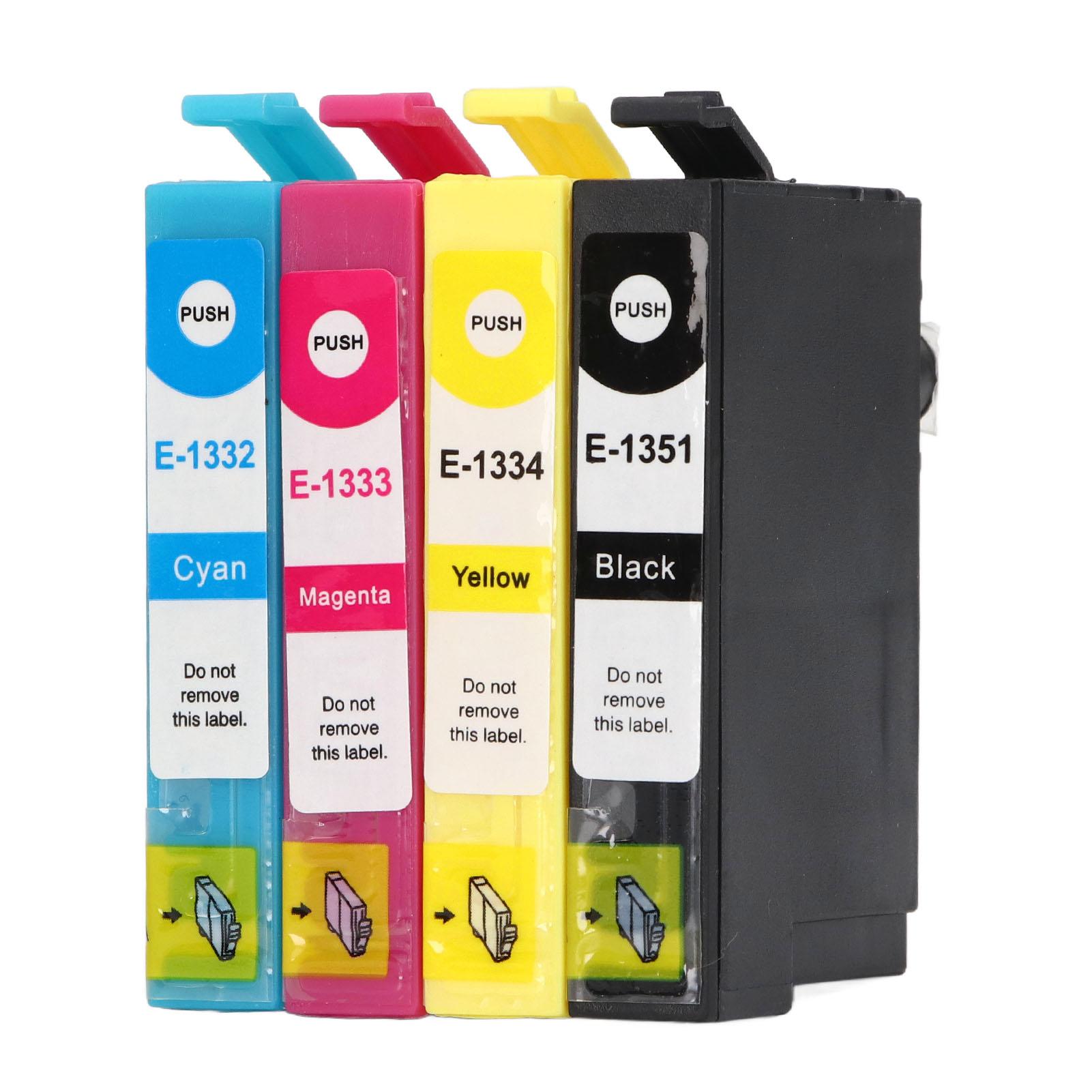4 stk Blekkpatron Svart Cyan Magenta Gul Jevnt Nøyaktig Klar Anti-Falming Skriverblekkpatron for Stylus T1351