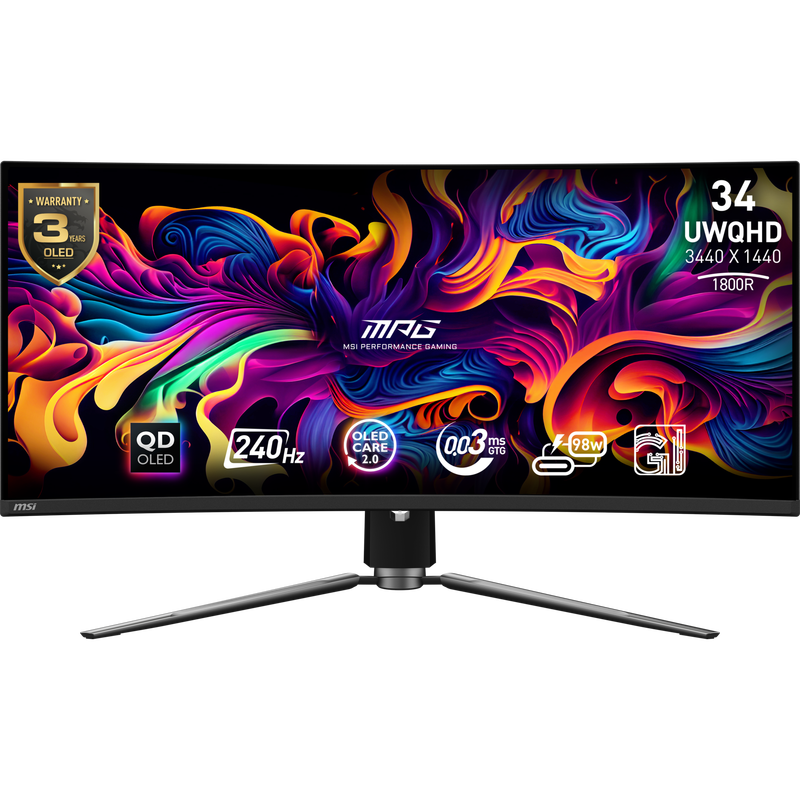 MSI MPG 341CQPX QD-OLED 34" Gaming Monitor | UWQHD | 240 Refresh Rate | Adaptive Sync | Curved Design