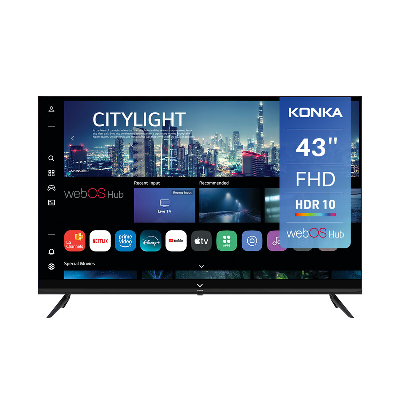 Konka DLED 43 pouces (108 cm) Smart TV - Full HD 1080p, webOS Hub, HDR10, Airplay 2, Wi-Fi, Bluetooth, HDMI eARC, Assistant vocal ThinQ AI intégré - KDG43YR682ANTS