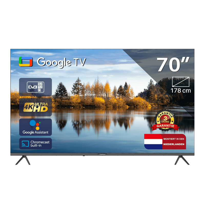 [Gratis Installation] TeeView Google Smart TV - QLED Ultra HD 4K - 70 Zoll/178 cm - Randlos Design - Tripple Tuner DVB-T/T2/S/S2/C - HDMI x3, USB x2, CI+ - Voice Controle & Streaming apps - Montiert in Eindhoven, Niederlande - TV70UQG-EU