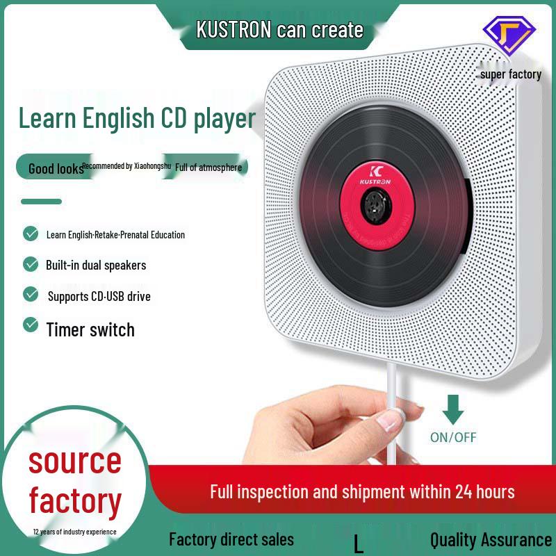 Wall-Mounted Bluetooth Speaker CD Player: Children's White Learning & Repeater Gift