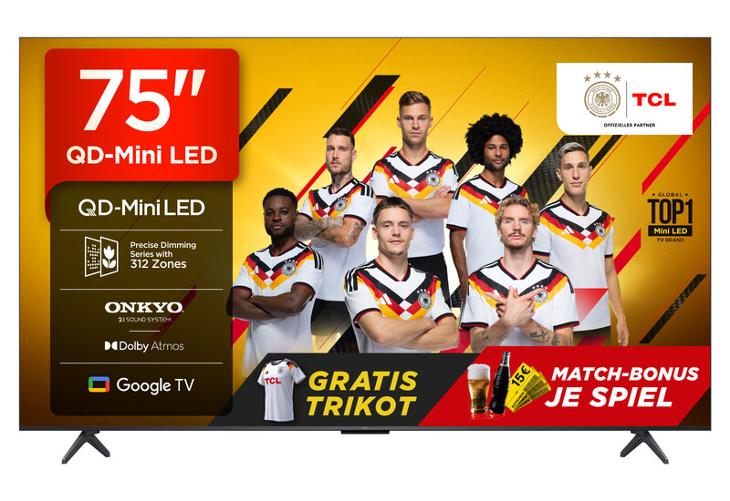 TCL 75Q7C QLED Mini LED Fernseher, 75 Zoll, 4K HDR Premium, Dolby Vision IQ & Atmos, Smart TV mit Google TV, Bang & Olufsen 6.2.2 Sound, 144Hz VRR, AMD FreeSync Premium Pro, HDMI 2.1, AirPlay 2, Alexa, IMAX Enhanced