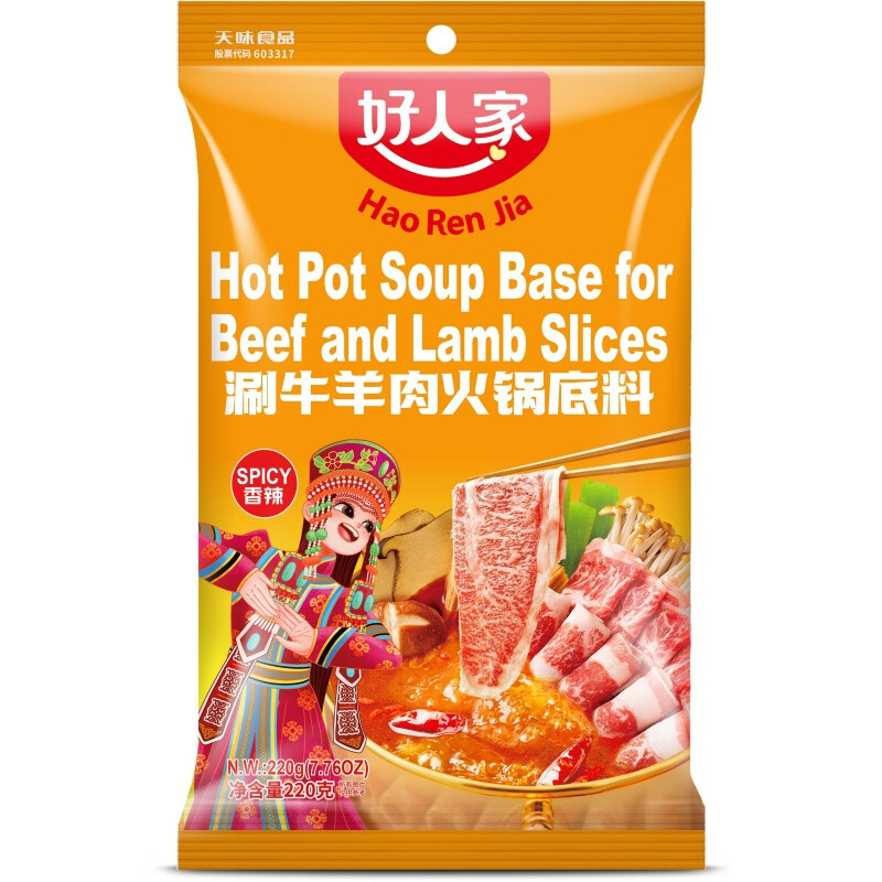 HaoRenJia Base de bouillon épicée pour fondue chinoise de bœuf et agneau - 220 g