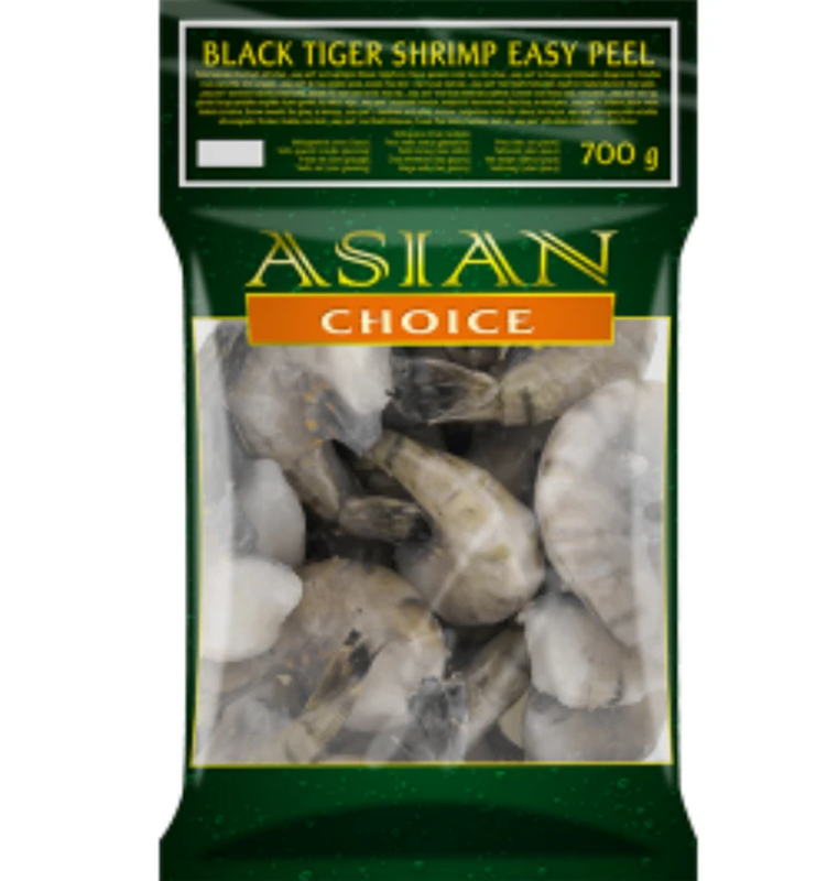 Asian Choice B/T Crevettes Black Tiger Hlso/Ezp calibre 31/40, sans tête, décortiquées et ouvertes sur le dos, 1 kg (700 g net)