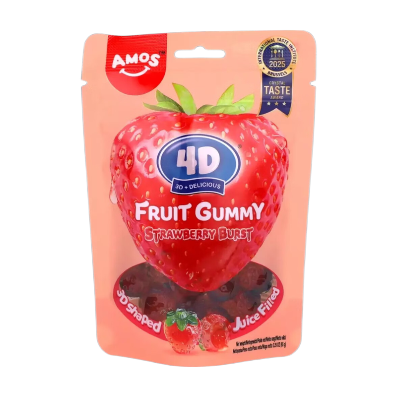 Amos 4D fruitgum sappige explosie - aardbei 65 g