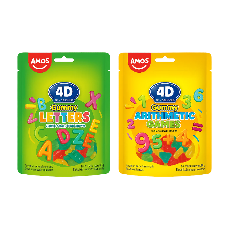 AMOS 4D Gummy Arithmetic Games & Letters 85g (1 unité - choix aléatoire)