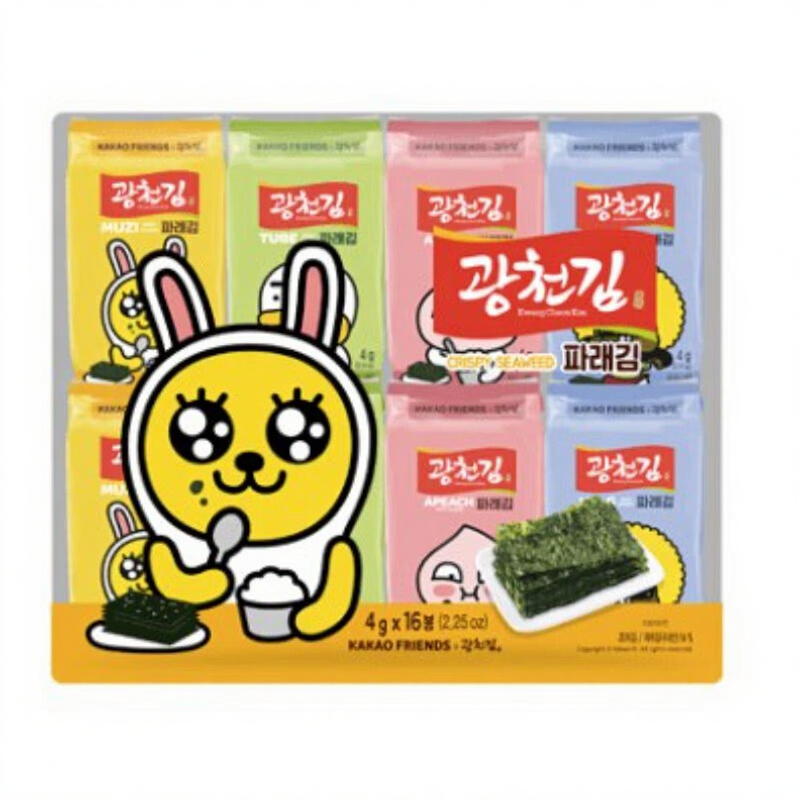Feuilles d'Algues Vertes Assaisonnées Kwang Cheon Kakao Friends - Pack 16 x 4 g