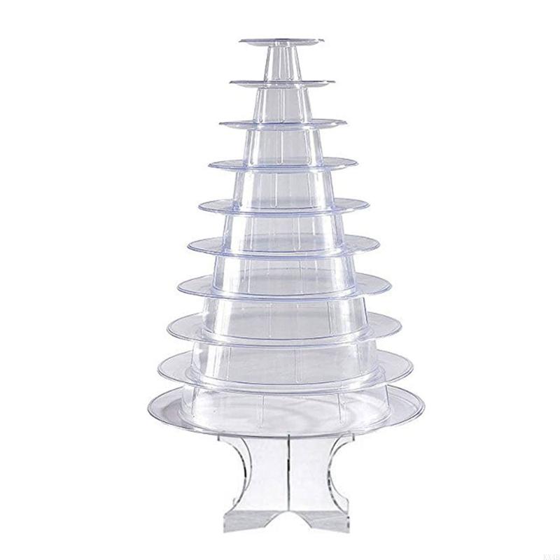KX4B Akryl Makron Displaystativ med Base Cupcake-stativ 10-etasjes Cupcake-tårn for Baby shower, Bursdagsfest, Bryllupsdekorasjon