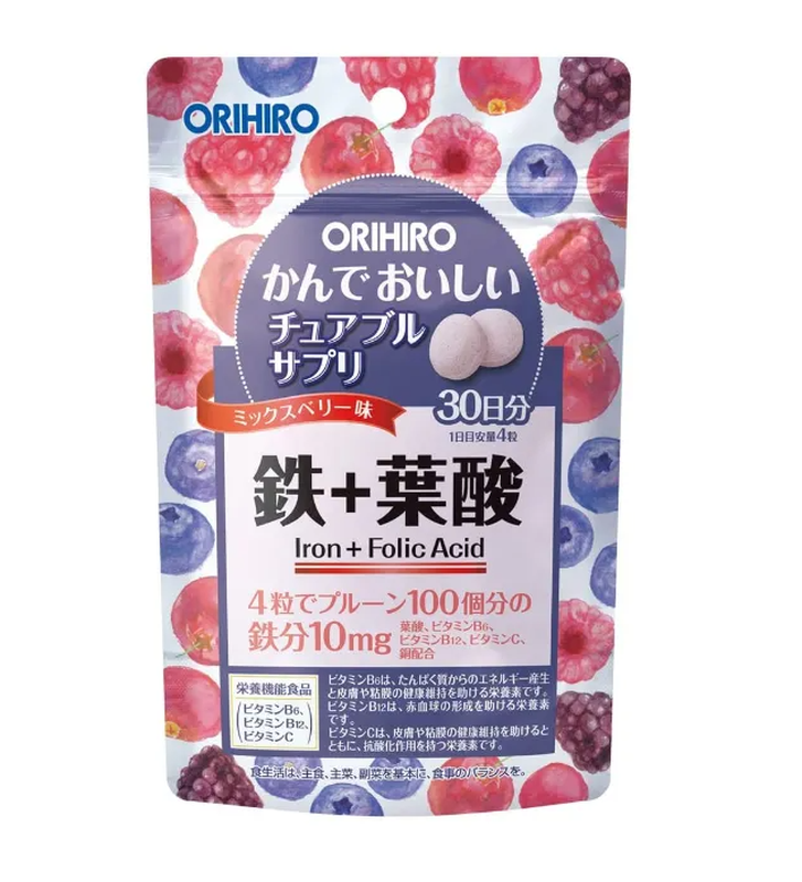 ORIHIRO Kautabletten mit Eisen + Folsäure, 60 g