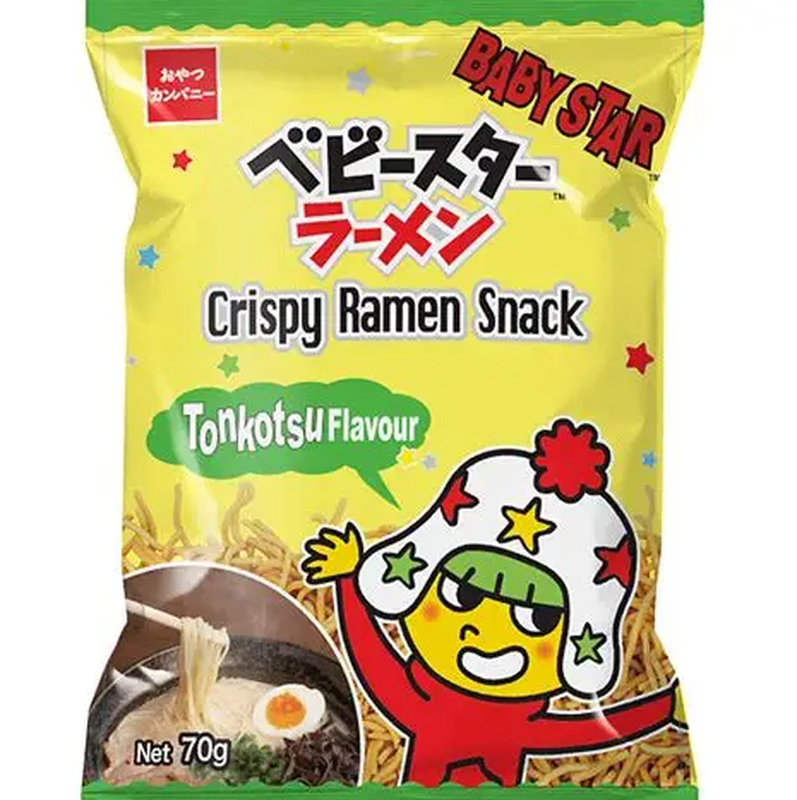 Baby Star Knuspriger Ramen-Snack, Tonkotsu-Geschmack, Hosomen, 70 g