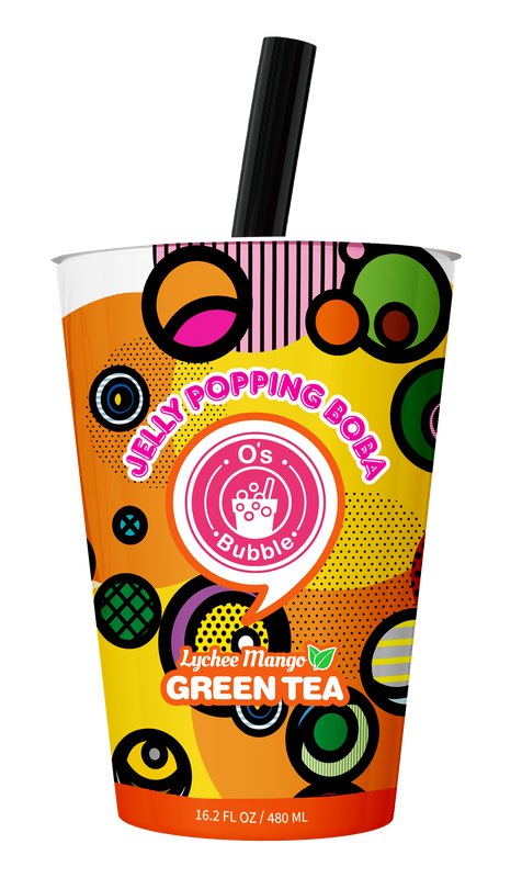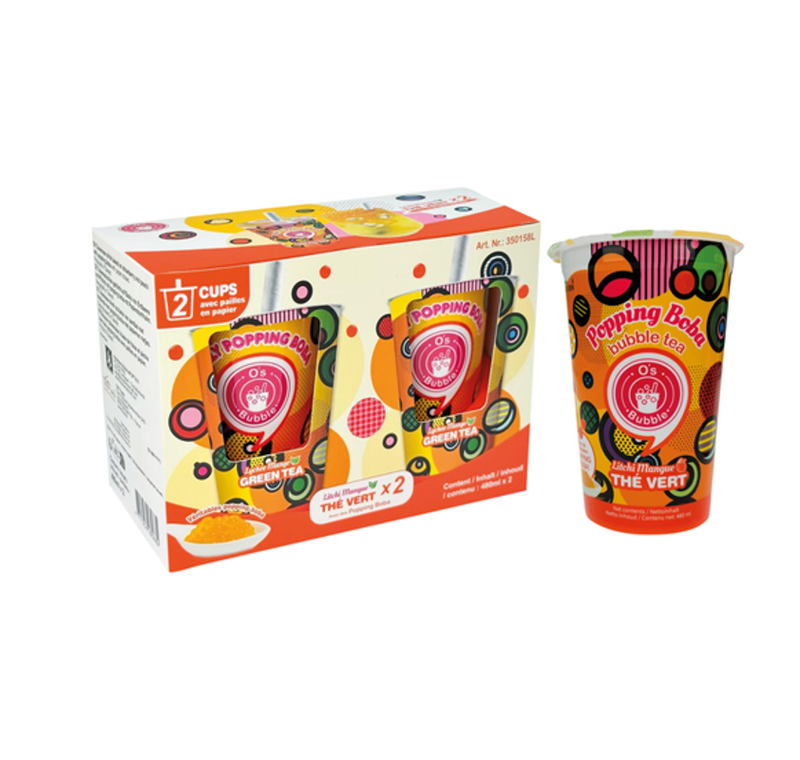 O'S BUBBLE Boisson Popping Boba saveur thé vert litchi & mangue - 2 x 480 ml