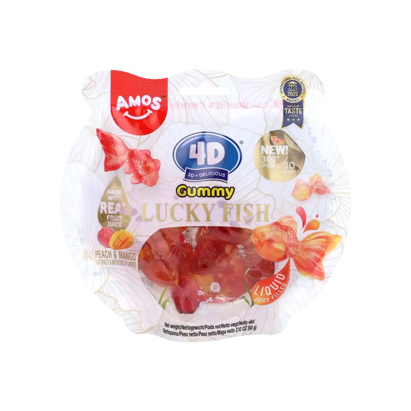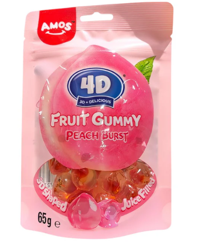 Amos 4D Juicy Burst Pfirsich-Gummibonbons - 65 g
