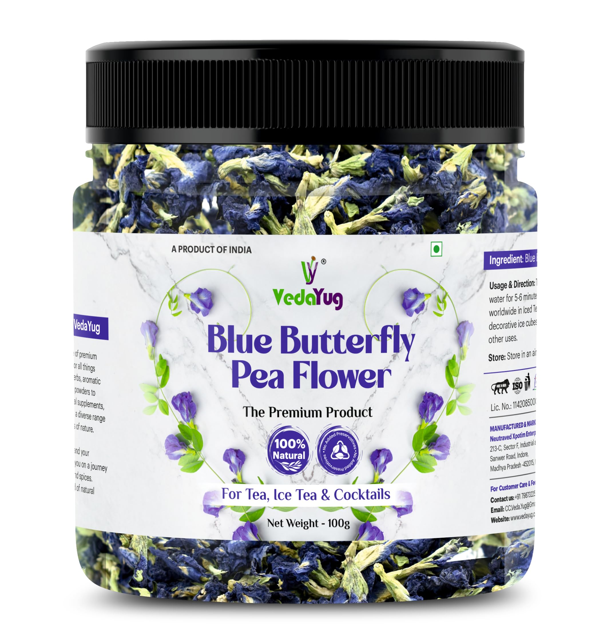 VY VedaYug Thé aux Fleurs de Pois Papillon Bleu 100 Grammes | Préparation de Thé Glacé et Tisane avec ANTIOXYDANT, Sans Caféine | Colorant Naturel | U