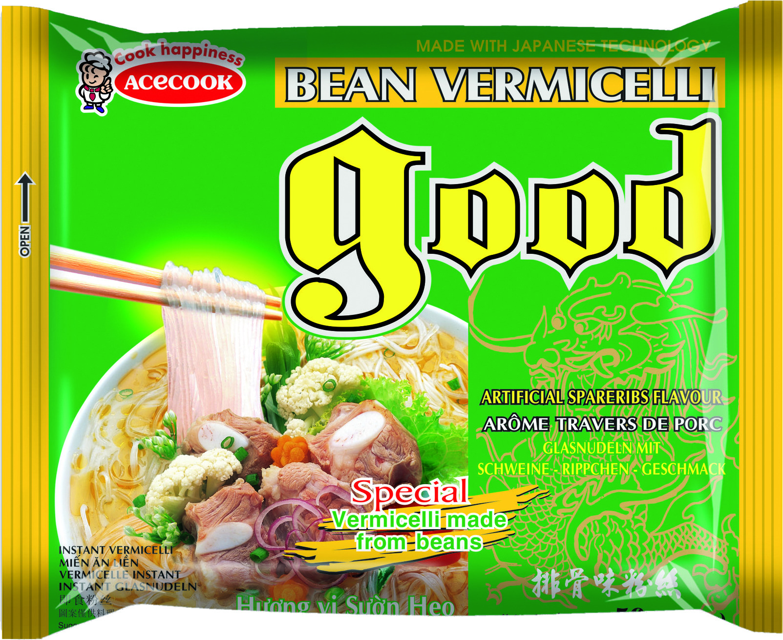 ACECOOK Vermicelles de haricot mungo instantanés, saveur travers de porc, GD 56 g