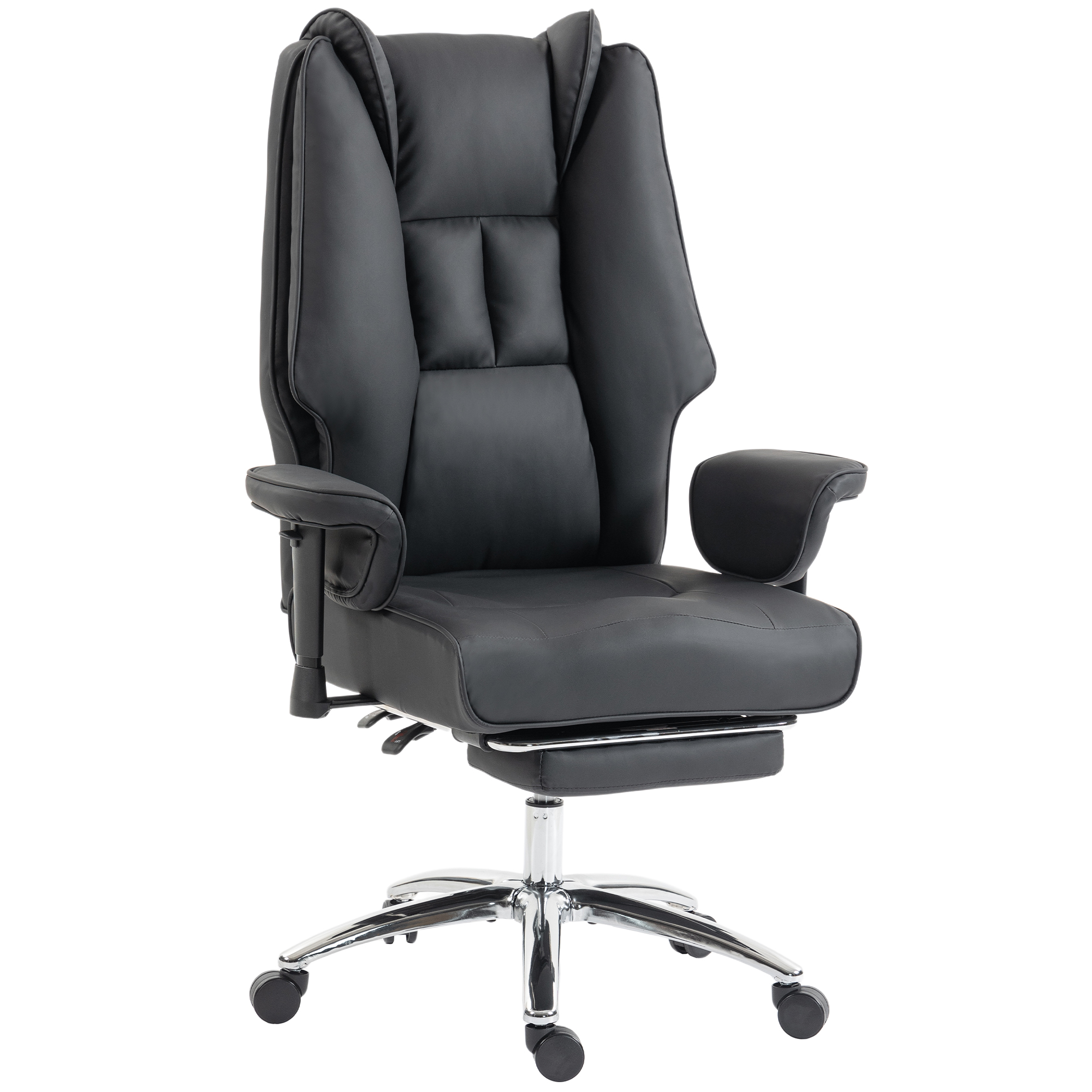 HOMCOM Executive Office Chair, Reclining Desk Chair with Footrest, Adjustable Armrests, Pet Friendly Faux Leather, Black