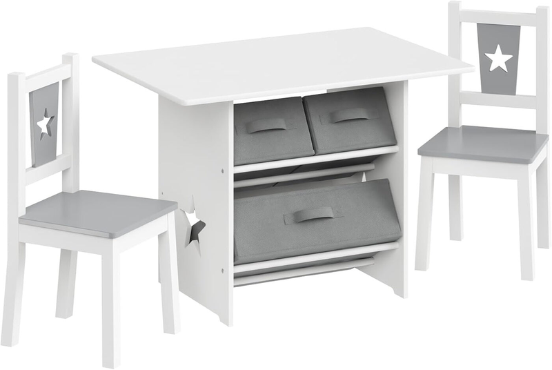 Lestarain Kindertisch-Set: 1 Tisch & 2 Stühle, Wendetischplatte, 2 Aufbewahrungskörbe, Weiß/Grau