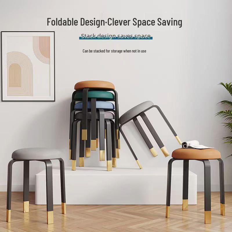 Okrągły Miękki Stołek Gąbkowy do Jadalni lub Salonu - Składany i Kompaktowy
