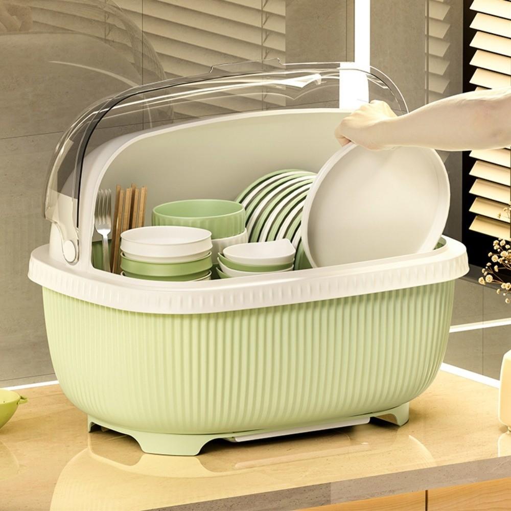 Plastikowy Ociekacz do Naczyń z Pokrywą Duża Pojemność Organizer na Sztućce Domowy beżowy
