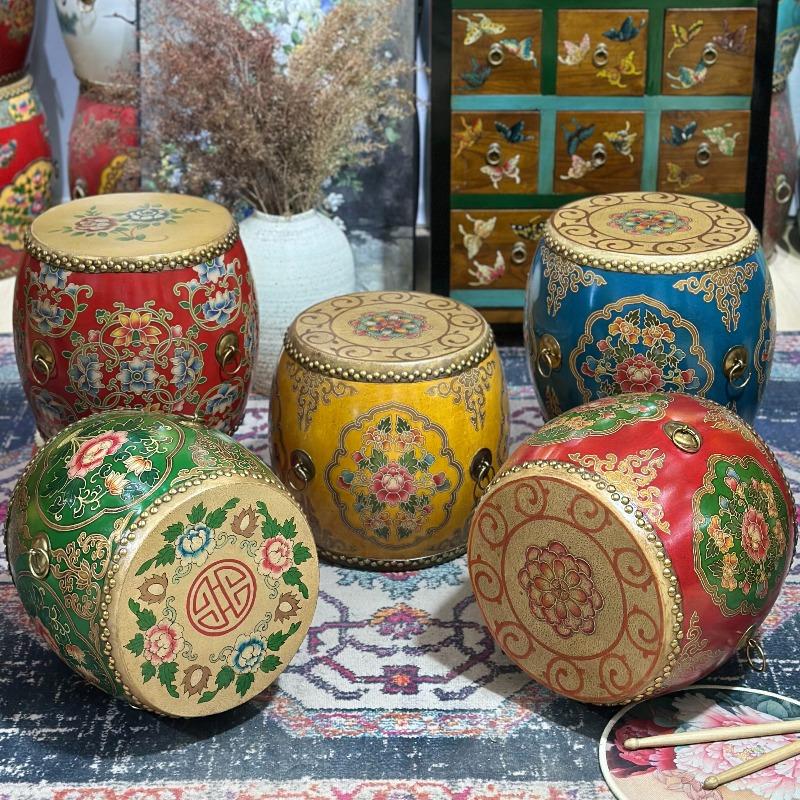 Nieuwe Chinese Stijl Massief Houten Kruk, Handgeschilderde Ronde Poef voor Entree & Balkon, Multifunctioneel Decoratiebankje & Bijzettafel
