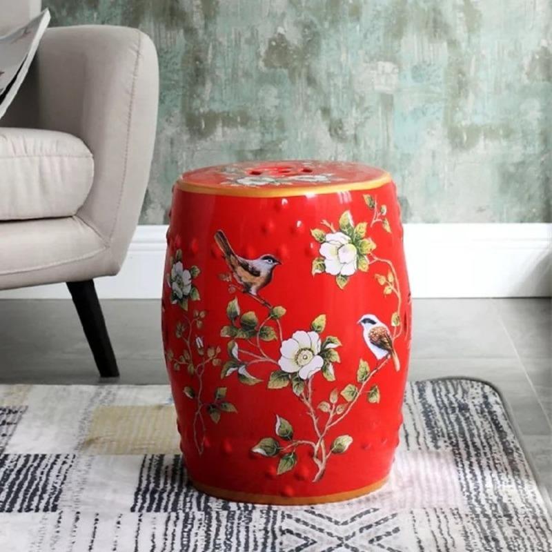 Nieuwe Keramische Trommelkruk in Chinese Stijl, Ottomaan met Bloem- en Vogelontwerp voor Hal & Woonkamer, Decoratief Schoenenbankje en Woondecoratie