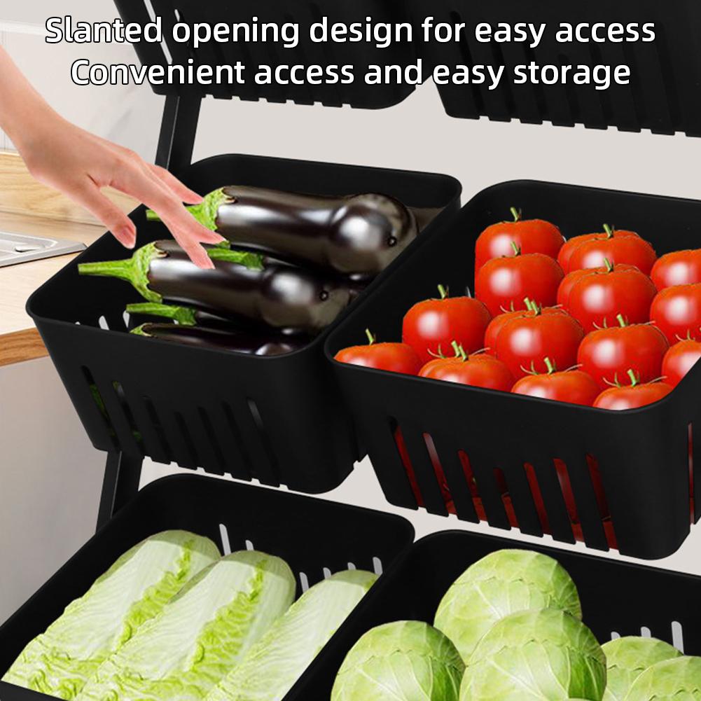 4-Laags Metalen Keukenopbergkar met Wieltjes Afneembare Fruit- en Groentemand Driehoekige Ondersteuning Roestvrij Rek voor Voorraadkast zwart