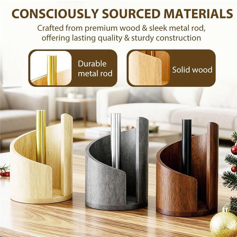 AB66-Berg Keukenrolhouder Aanrecht met Houten Ronde Basis en IJzeren Houder Houder Stand voor Keukenrol Organiseren zwart
