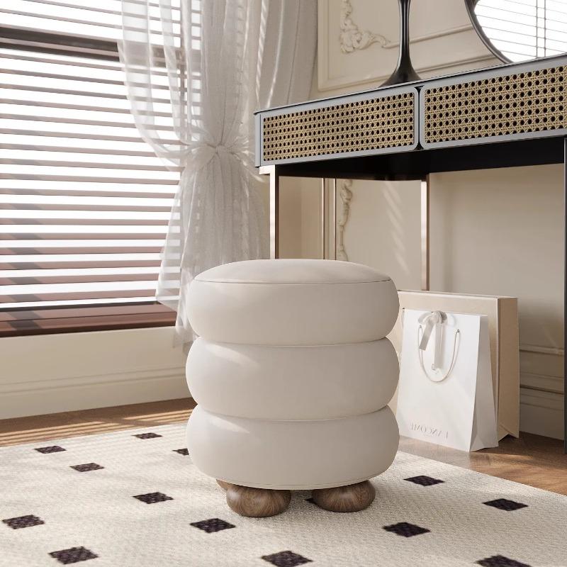 Luxe Crèmekleurige Stijl Kaptafelkruk - Meisjeskamer Ronde Schapenvacht Make-upstoel, Minimalistische Decoratieve Poef Gezellige Voetensteun