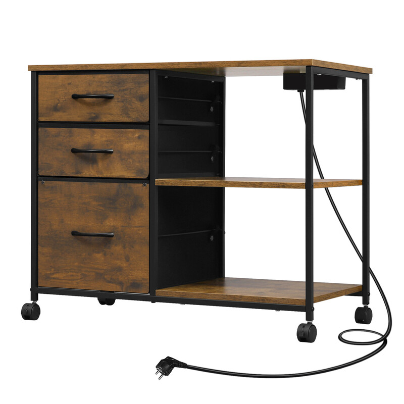 Woltu mobiler Aktenschrank, Metallaufbewahrung mit Rollen, Steckdosen und USB-Anschlüsse, 3-Schubladen-Organizer für Büro und Zuhause, 80 x 40 x 66 cm, ASK07hov