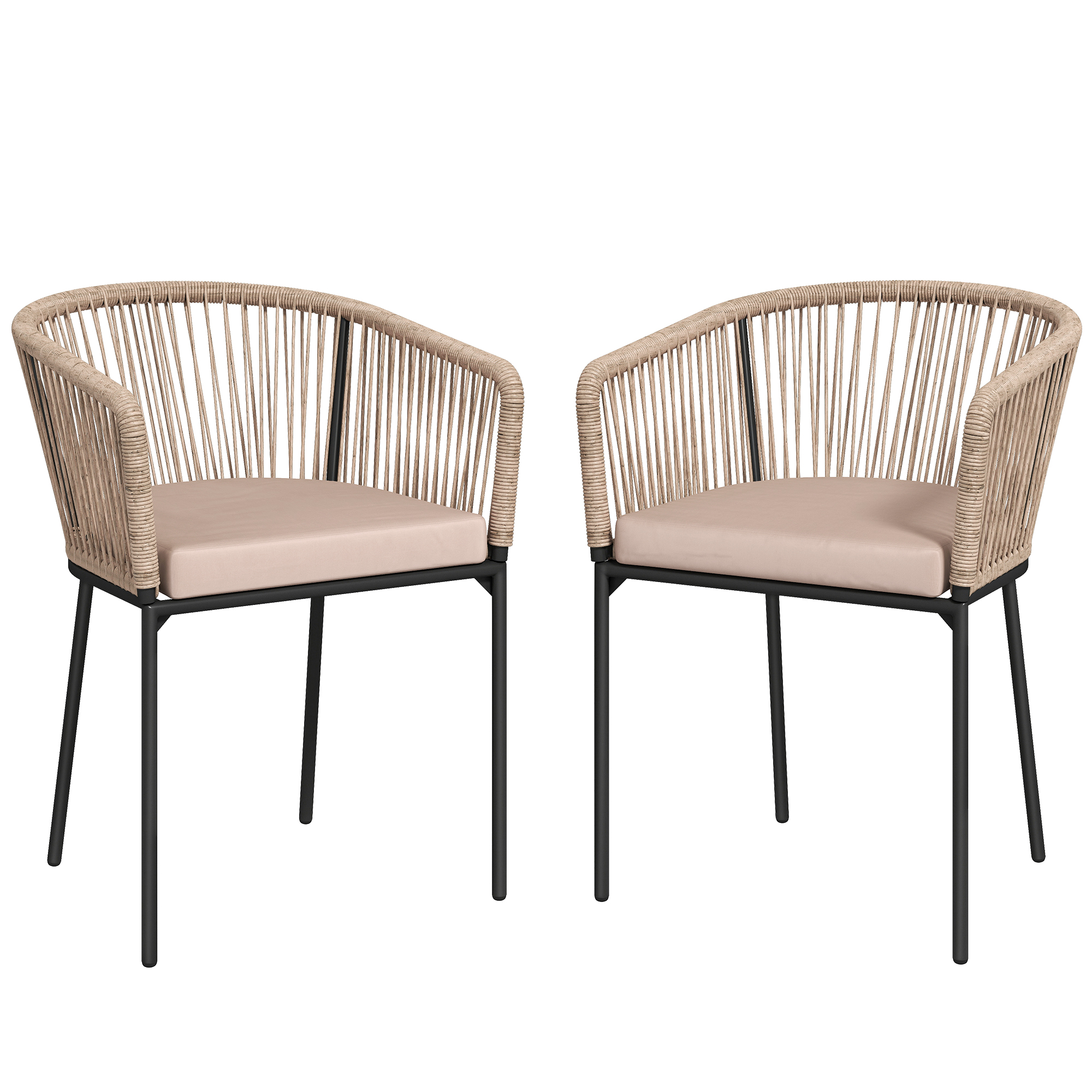 Outsunny Garden Chairs Set of 2, Rattan Garden Dining Chairs with String Back Armrests, Cushions, Natural Wood Finish