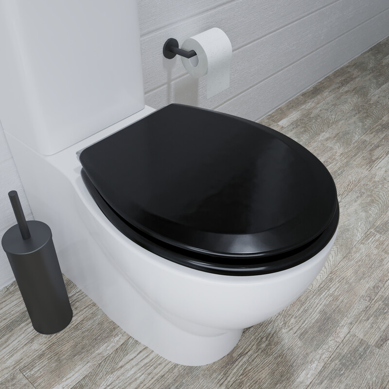 Croydex Flexi-Fix Wooden Toilet Seat Lene Oval - Matte Black